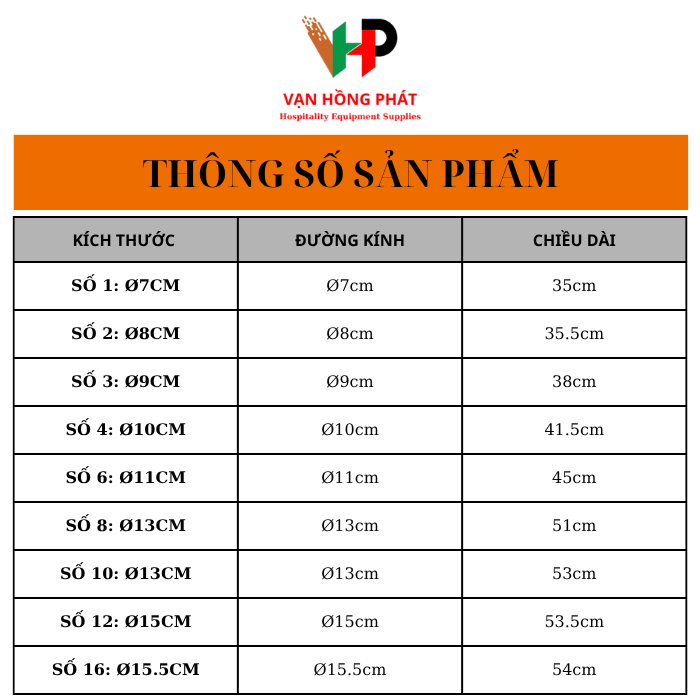 • Số 16: Ø15.5cm – Dài 59.5cm