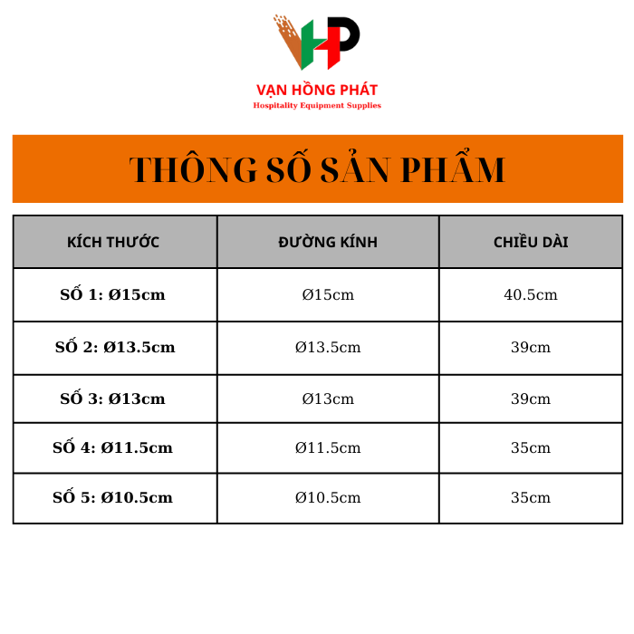 - Số 5: Ø10.5CM – Dài 35cm